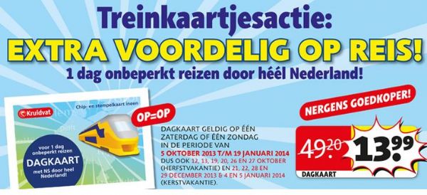 Wilt u ook gebruik maken van een kortingsactie, omdat u binnenkort naar vrienden/familie wilt? Dan raden wij u aan om onze website goed in de gaten te houden, zodat u op de hoogte bent van de laatste aanbiedingen! Kijk op www.treinkaartje-kopen.nl voor de acties van verschillende aanbieders!